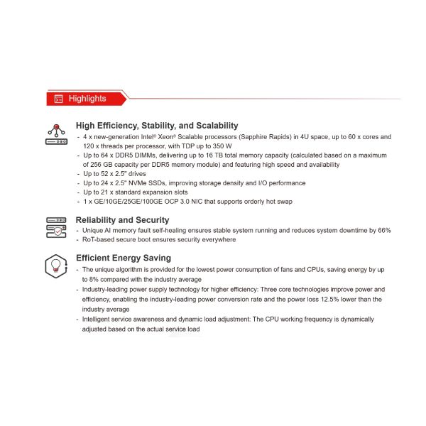 Processors : 2 or 4 x 4th Gen Intel® Xeon® Scalable processors (Sapphire Rapids) with TDP up to 350 W per processor